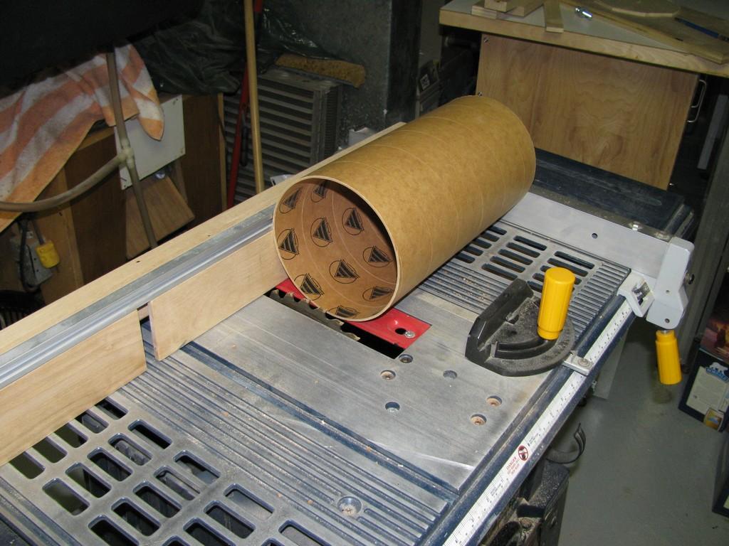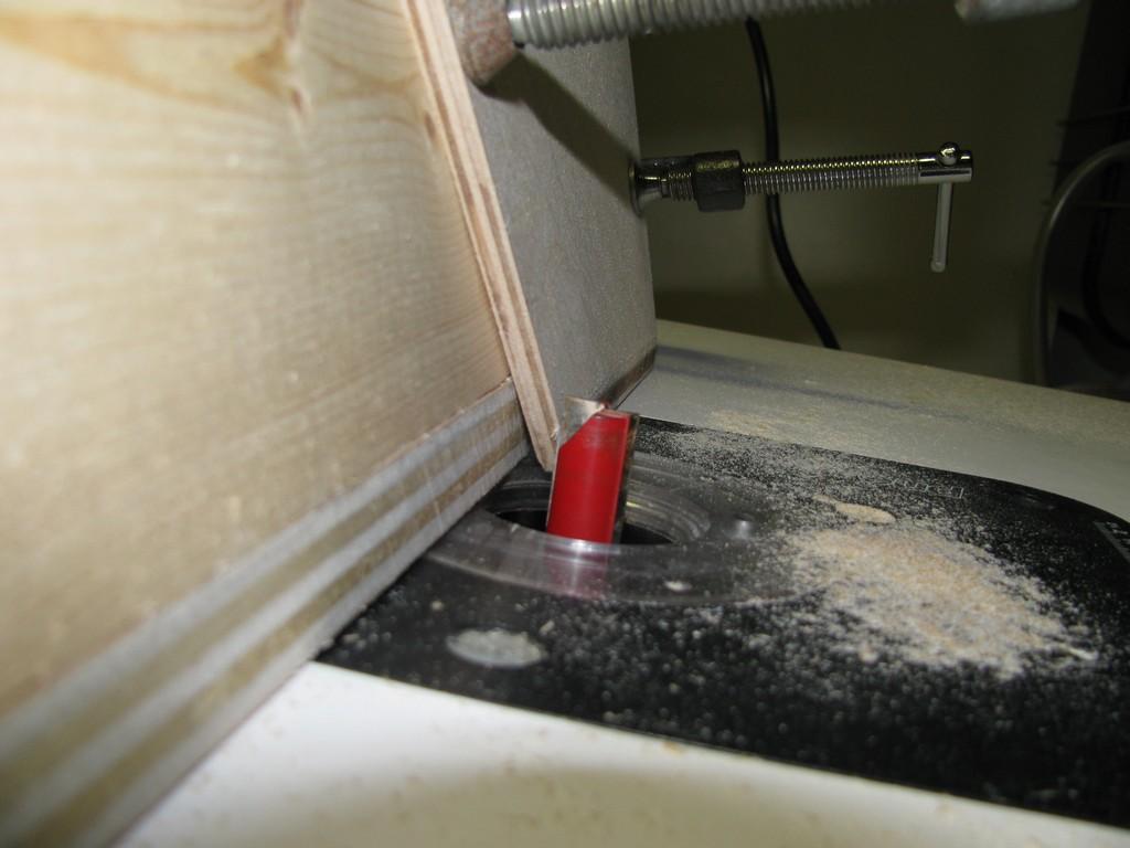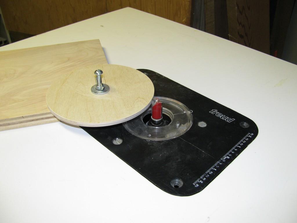 Le même outil que pour faire les ailes, sert aussi à tourner les "bulkhead" et les anneaux de centrage. Facile à utiliser et très précis. Note: on ne voit pas bien sur la photo, mais la planche est retenue en place grâce à 2 serts. |
