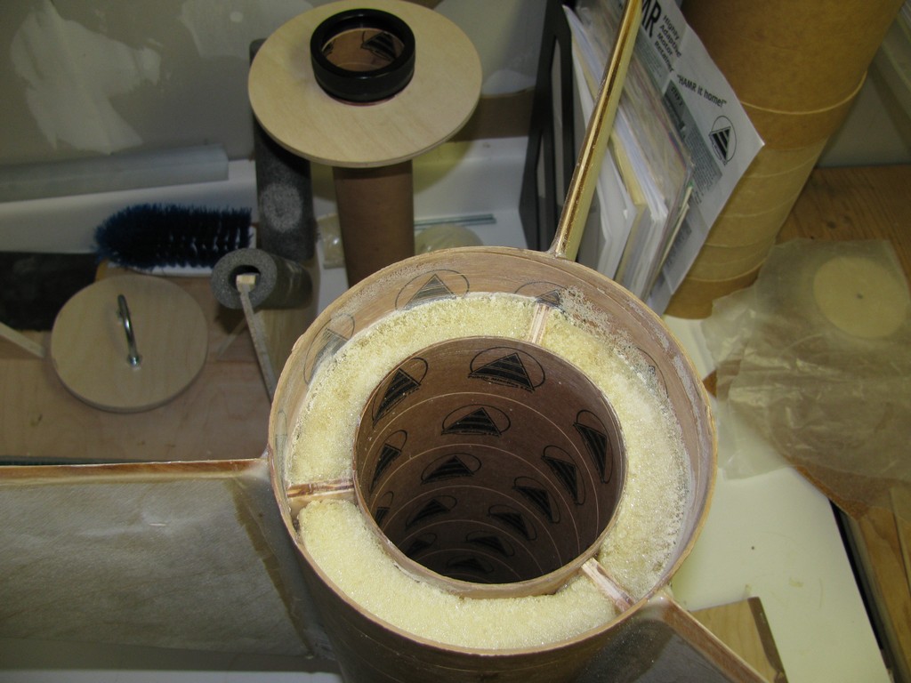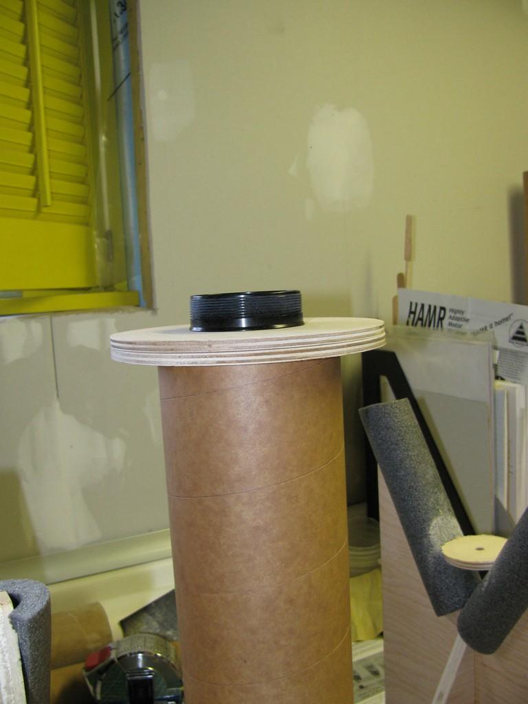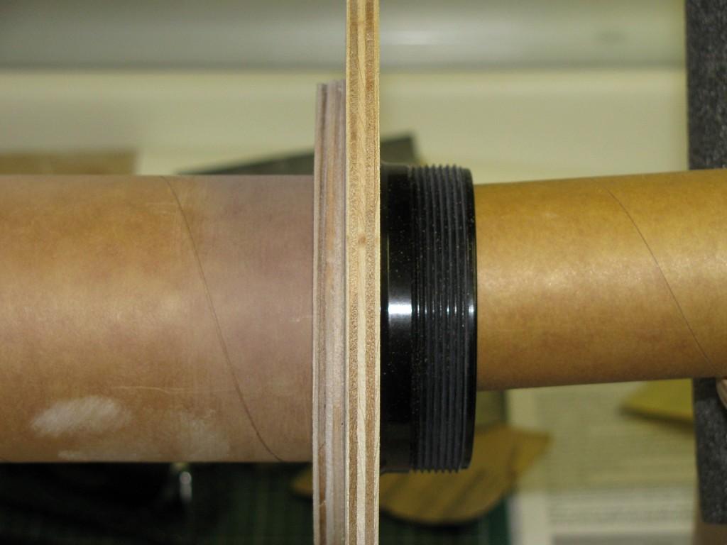 | Préparation de la section pour le support de l'électronique. C'est un coupleur pour tube de 6" avec au centre un bout de tube de 6". | |