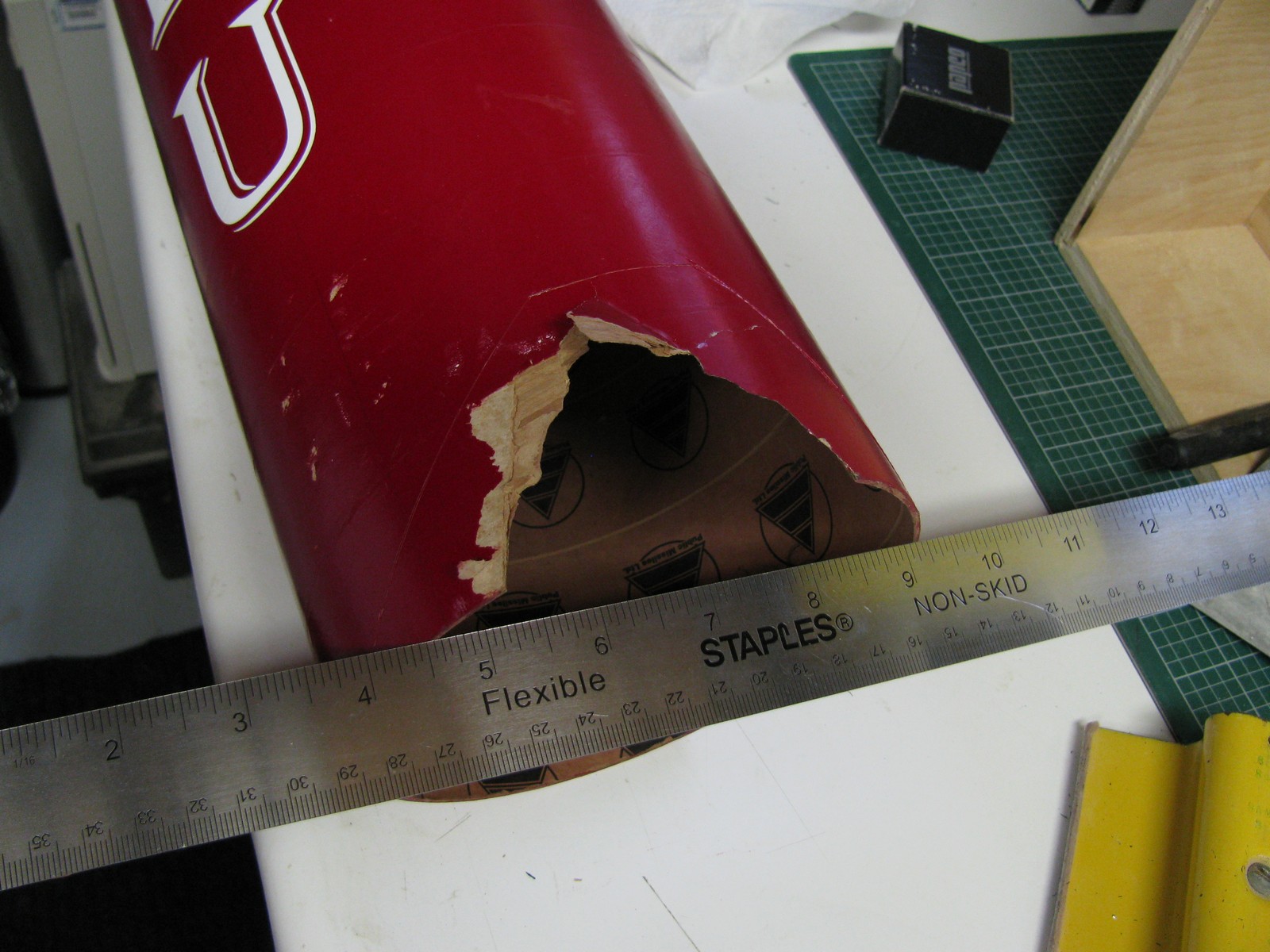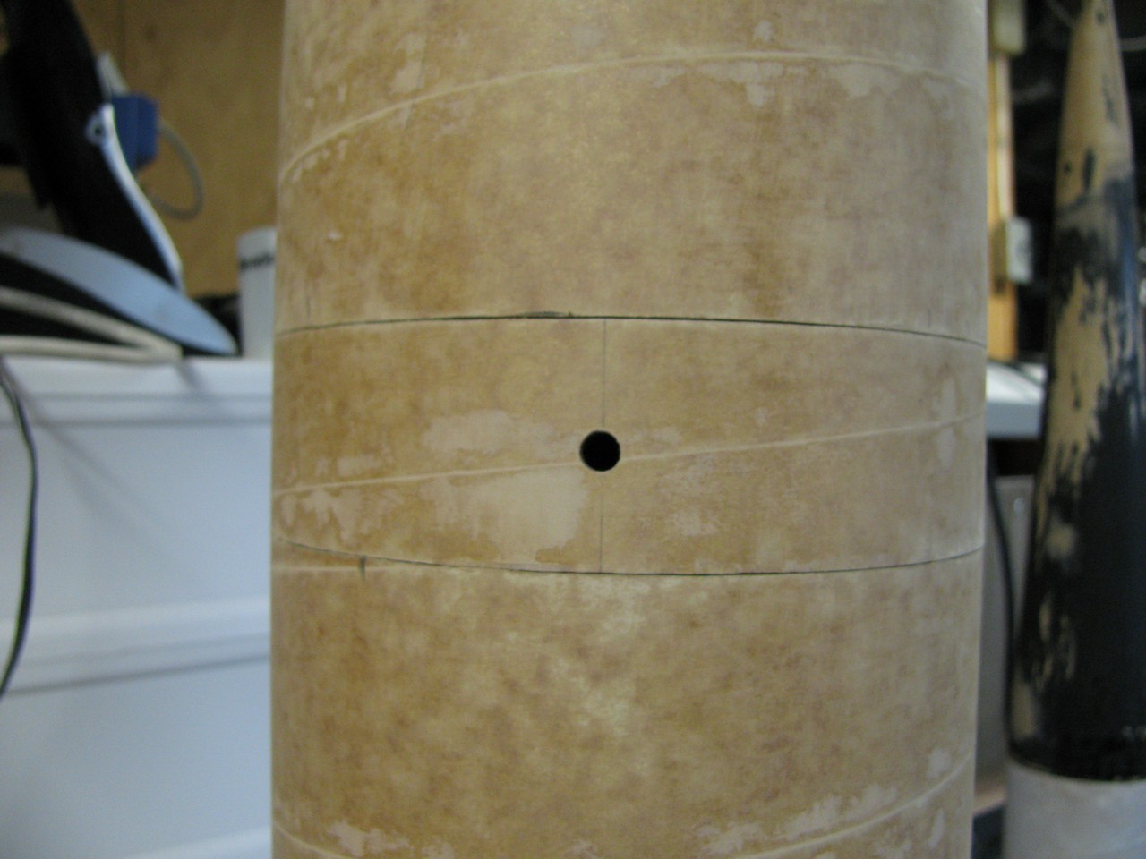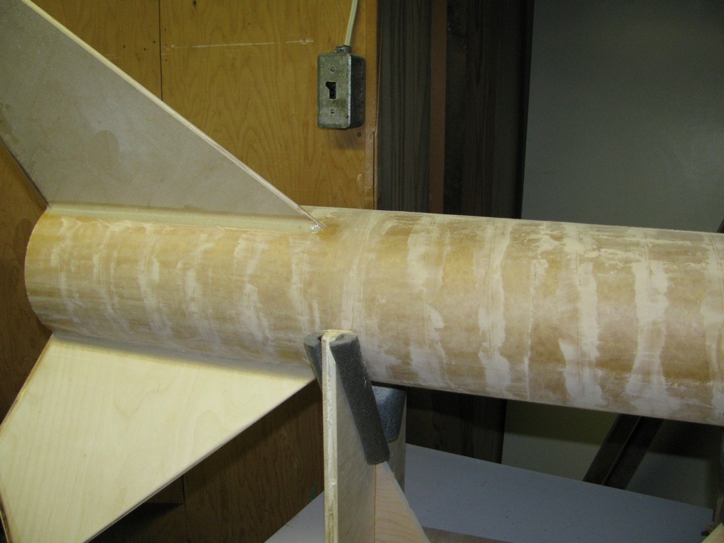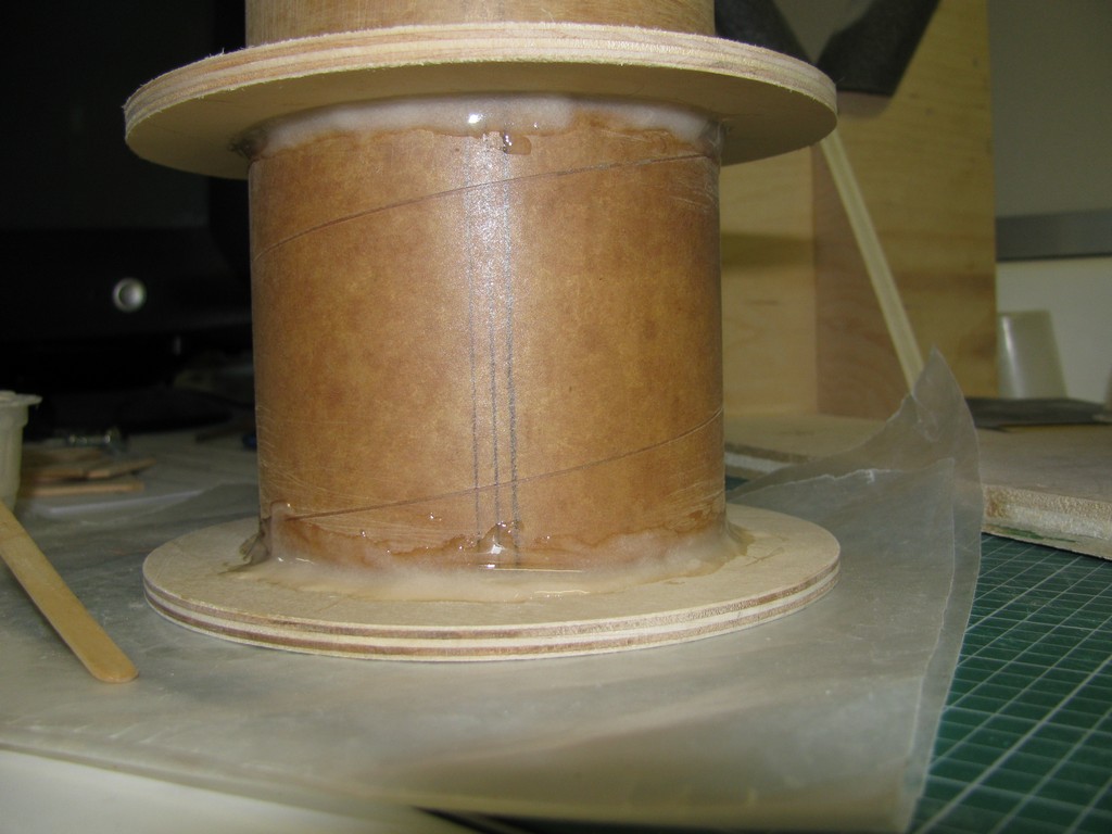 | Pour compléter la réparation, 2 couches de fibre de verre (6oz + 2oz), ainsi le tube est réparé et plus fort. | |