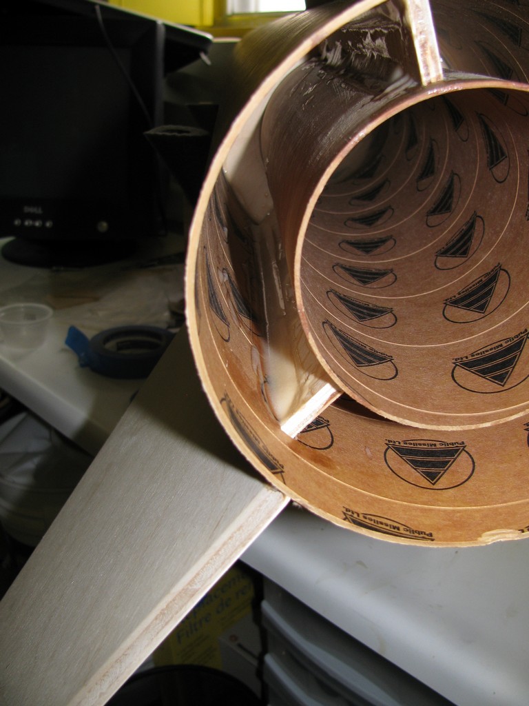 Début de la construction du compatiment électronique. Ici un anneau sert à retenir le couvercle du compartiment. |