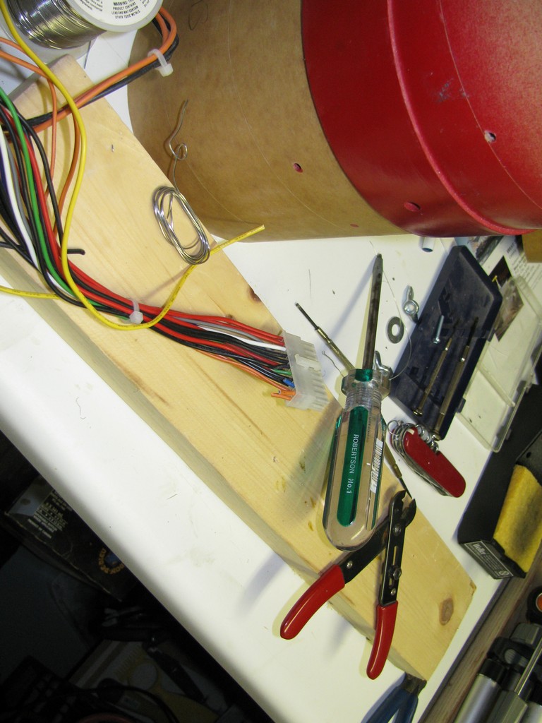 | Besoin de beaucoup de fils de couleur... un vieux "power supply" de PC, on recycle et on s'y retrouve dans tous ces fils. | |